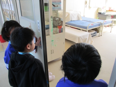 音楽室や保健室,体育館…。学校のいろいろな場所を紹介してくれました。