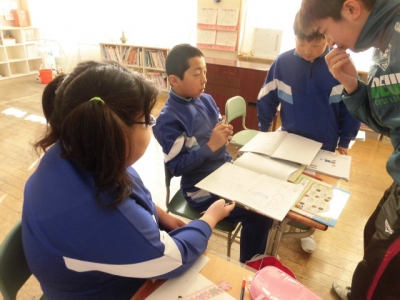 4年生は小数のかけ算の練習問題に真剣に取り組んでいました。