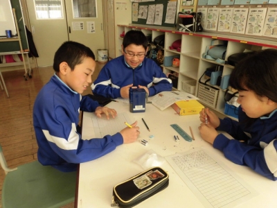 5年生は算数の学習で直径と円周率の比例関係を発表することができ