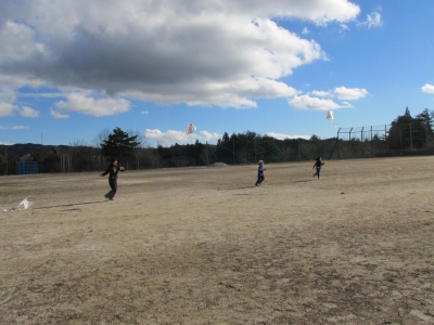先週の木曜日には、1.2年生が「凧揚げ」をしたばかりでしたが。