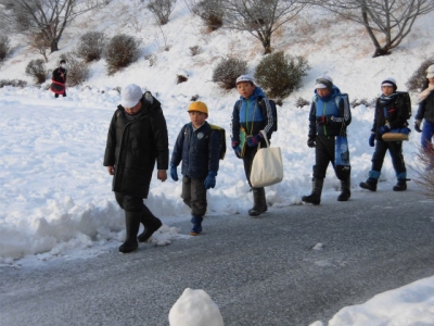 先生方と子供たちで雪はきをしましたが、