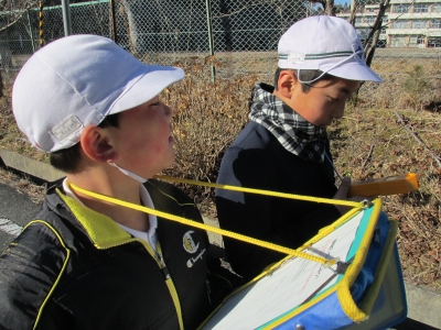 昨年学習したことを思い出しながら,学校内や通学路の放射線量を測定しました。