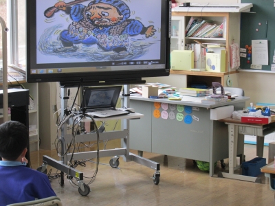 1年生の国語では、デジタル教科書を活用した学習を行っています。