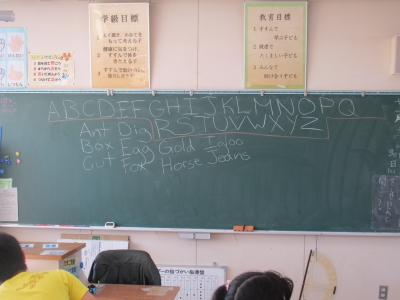 アルファベットの発音を主に学習し、そこからどの単語も読めるようにさせたいという願いがあり、楽しく学習に取り組んでいます。
