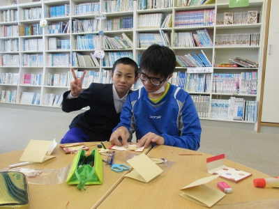 養護教諭の先生の指導の下「スクラップブッキング作り」を行いました。