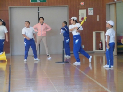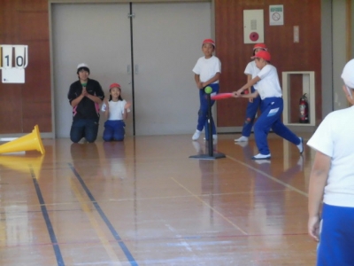 今日のクラブ活動は、紅白に分かれてティーボールを行いました。攻撃で