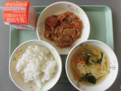 今日は、マーボあつあげ、中華スープ、ごはん、牛乳 でした。