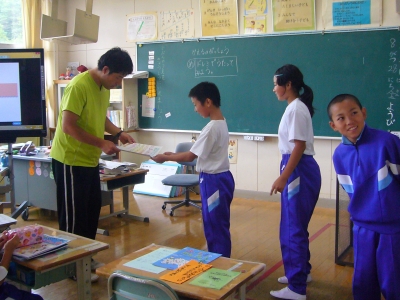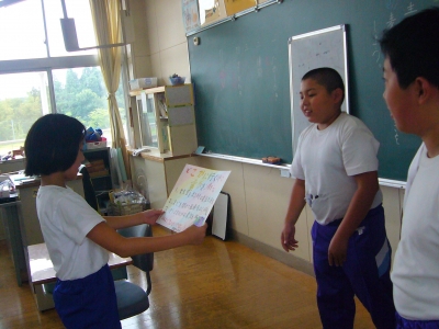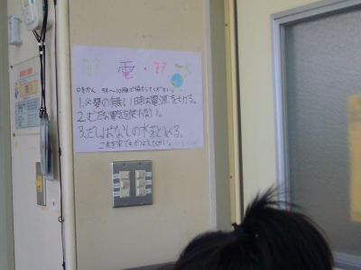 今日は、5・6年生が、節電・節水を呼びかける「ポスター」を作り、各学年の教室に行き、呼びかけました。