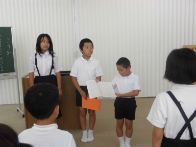 第1学期が今日で終了しました。終業式では3名の皆さんが1学期の反省と
