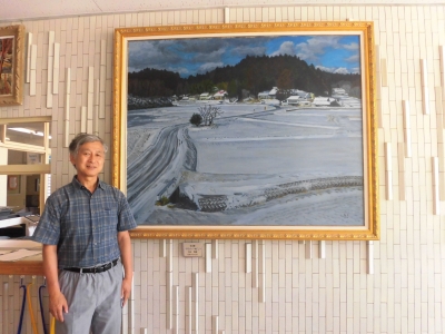 本校に絵画の寄贈がありました。桶売の素晴らしい冬景色「冬晴れの桶売」
