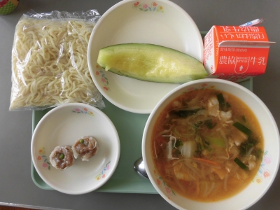 今日は、みそラーメン・バター風味、ポークしゅうまい、牛乳、メロン でした。