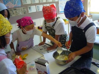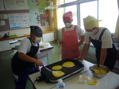 今日は,班ごとに「ミルクレープ」や「ハワイアンホットケーキ」を作りました。