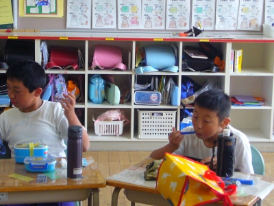 全校生のみんなに食事の後は必ず歯みがきをしよう!と呼びかけました。