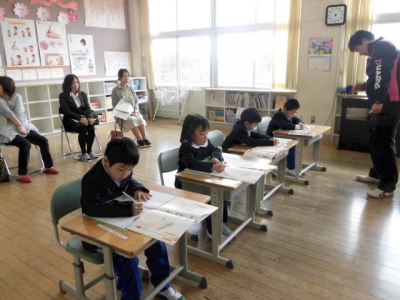 1・2年生は、文字を書くときの姿勢や鉛筆の持ち方に気をつけながら