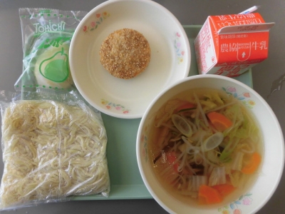 今日は ごま大学芋、塩ラーメン、冷凍洋ナシ、牛乳 でした。