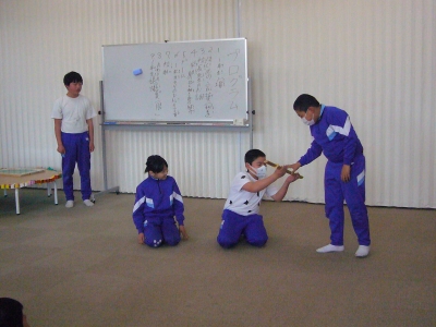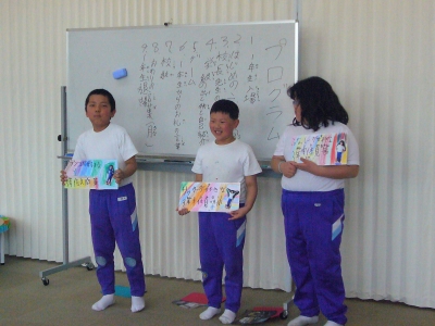 3・4年年生出し物はクイズです。1年生は楽しく答えていました。