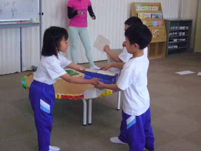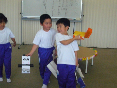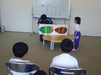 2年生の出し物は、「はらぺこあおむし」の読み聞かせです。
