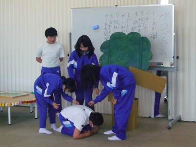 各学年の出し物のあとは、みんなで「だるまさんがOOをしたゲーム」と「震源地ゲーム」をしました。