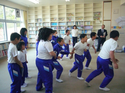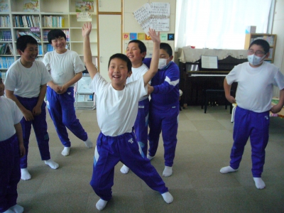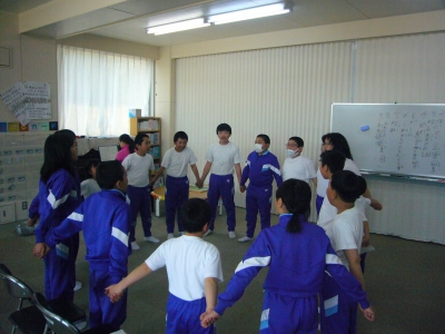 最後は、みんなで輪になり、元気よく校歌を歌いました。