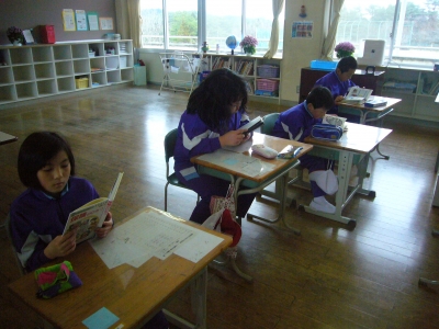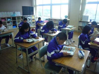 桶売小学校では,毎週火曜日と木曜日は8:00~8:10が読書タイムになっています。