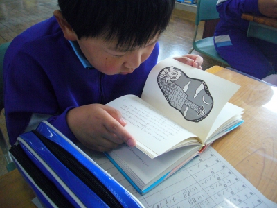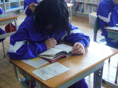 <6年のYさん。高学年らしく,長い作品に集中しています。>