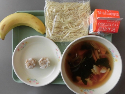 今日は、しょうゆラーメン、牛乳、ポークしゅうまい、バナナ でした。