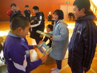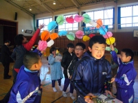 さらに,在校生から6年生へ,「色紙」「消しゴムスタンプ」「花束」のプレゼントがありました。6年生も嬉しそうに受け取っていました。