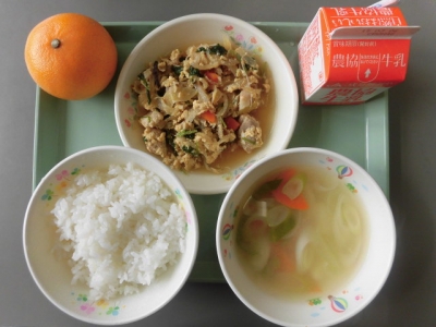 今日は、親子煮、じゃがいものみそ汁、ごはん でした。