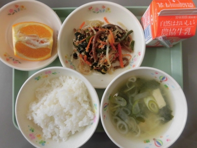 今日は、ビビンバ、わかめ汁、ごはん、牛乳 でした。