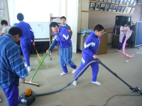 「見えない鬼を退治するには努力することが大事ですね。」という児童の終わりのことばで締めくくりました。豆まきの後は、お掃除も全員で。