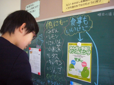 が、「かぜ・インフルエンザの予防」についてわかりやすく掲示して