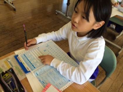 子どもたちに今日、「体力証」と「個人カード」を配付しました。子どもたちと今回の結果をもとに、自分の現在の体力の結果と、今後の課題を確認しました。個人カードには、課題としている体力要素に対しての「トレーニング内容」が書かれていました。さらに、自己トレーニングメニューとカレンダーを作成する欄があり、子どもたちとともに、今後の運動の計画を立てました。