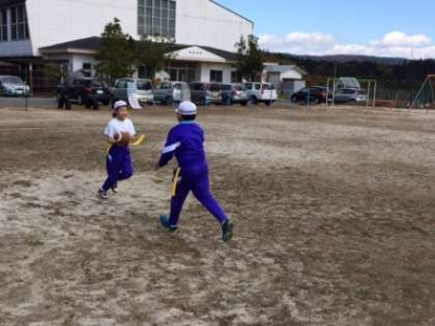 体育では「タグラグビー」に取り組んでいます。3~6年合同であるため、4人の3・4年生にとっては有り難いことです。