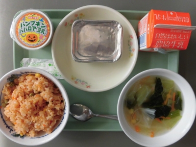 パンプキンババロア でした。ハロウイン献立です。かぼちゃで作る