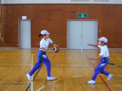 体育に行く途中、給食を下げた後など、みんなが集まって学習していきます。
