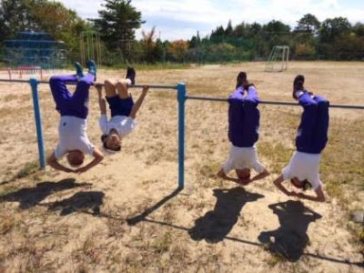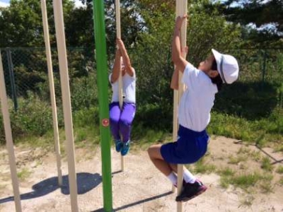うんていや登り棒など、校庭の遊具を使用しながら、体を支える腕の力を鍛えてきました。