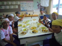 調理が始まる前,5・6年生は一足先に家庭科室へ行き,用具の準備をしたり,進め方を確認したりしていました。活動をスムーズに進めるための行動,大変立派ですね。