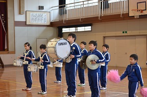 へバトンタッチ。新鼓笛隊による「校歌」を聴いていただきました。6年生の2名は、6年間の大役をやり終