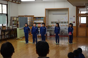 第三部は、お招きした12名の地域の方々へ、感謝の気持ちをこめて、学級ごとの出し物をお見せしました。