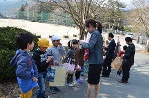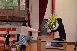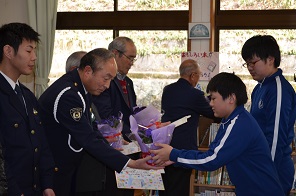 しのことばがありました。その後、児童代表からお礼のことば、そして花束が贈られました。その後、見送り