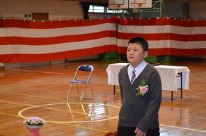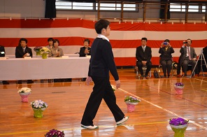 今年度の卒業生は2名、威風堂々に乗せ、胸を張って入場してきた2名の卒業生、温かな拍手につつまれ