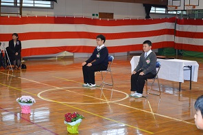 本日で第3学期の終わり、そして平成25年度の終わりを告げる、修了式が行われました。1年生2名、2年生1名、