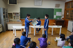 に分かれて、それぞれ日々の役割に取り組んでいます。その児童会が次の世代に引き継がれる大事な会です。