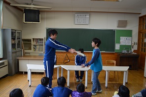 次に、担当の先生から次年度の委員会組織の発表があり、新旧委員長の引き継ぎが行われました。ここでは、