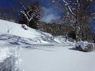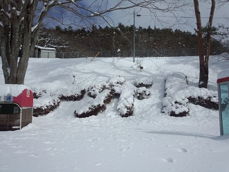 バス停の皐月 2月9日11:47 学校入口の坂(50cmの積雪) 2月9日11:07
