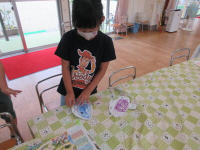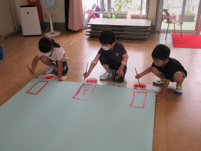 夏祭り会で使用する顔出しパネルの準備も始まりました。ほし組が中心になって取り組んでいます。