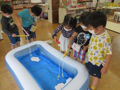 「落ちないようにゆっくりね」「どれにしようかな」魚釣りも楽しみました。