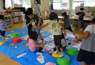 ほし組では、魚釣り遊びが盛り上がり、釣り場をもっと広くしようとたくさんアイディアが出てきています。
