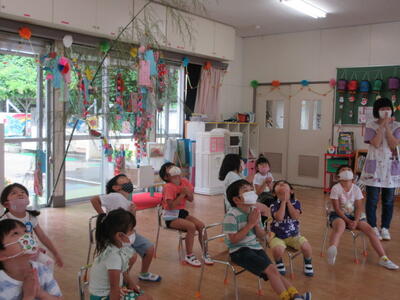 みんなの願いが空の織姫様と彦星様に届きますように・・・と、みんなでお祈りしました。