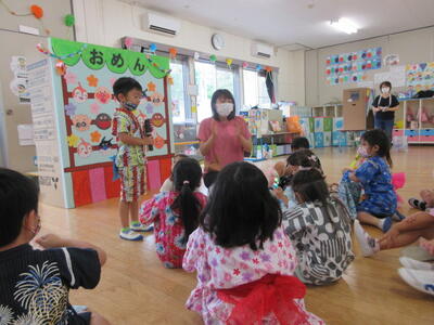 「これから夏祭り会を始めます」大きな声でお当番さんがあいさつしてくれました。